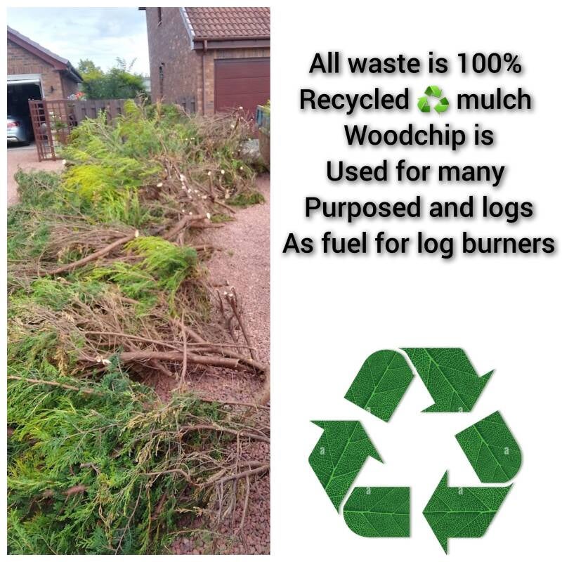 All green waste is eco friendly recycled ♻️ into useful woodchip biomass mulch and fuel for log burners 100% Recycled there is nothing wasted whatsoever